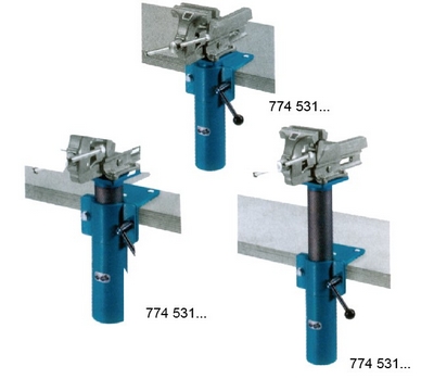 落地式,可以十分轻松地在0-200mm高度自动升降, 根据使用者身高不同立刻调整到合适高度。 还可以根据工件所处角度在0-360°范围内调节台虎钳。 松开安全手柄,打开锁紧装置,气压弹簧向上产生极大弹力, 推动台虎钳向上,上弹力超过重力,调节高度时感觉不到台虎钳重量。 调节后锁紧手柄。