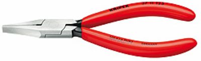 精细机械元件的装配;适用于夹持、固定、扳折及调整;钳口尖部精磨处理;钳口表面光滑;钳口平整,绝无毛刺;装配接合;矩形,凹扁嘴;长度125,头部镀铬,塑料套柄