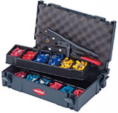 TANOS MINI-systainerTM包装(牢固的塑料盒体);两个可堆叠的塑料插入格,每个各六列,用于装连接端子;压线钳97 00 215 A,每个端子各25个型式和说明按货号 97 99 - 01/02/04/07/09/14/16/17/20/21/34/35
