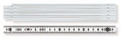 White plastic folding rule (EG III) with black graduations, riveted metal spring joints (1 m/2 m/3 m), Packing unit: 10 items.