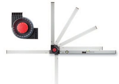 Robust foldable angle level for variable transfer or taking of angles of 0° to 270°. The angles can be fi xed in 15° steps. With the built-in vials it can also be used as a spirit level. Easy transport. Available in different sizes.