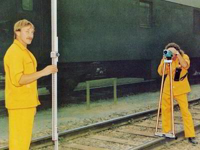 有倾翻设置的莱卡光学 高度可调三脚架 有测量范围的水平尺 可用于宽底钢轨或者槽轨